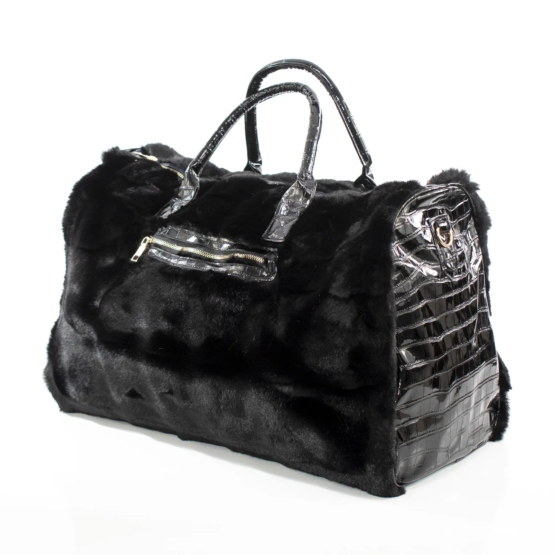 This spacious carrying bag features a fur and leather exterior and designer stylings that make it an impact making addition to any outfit and perfect for either casual or business outings.